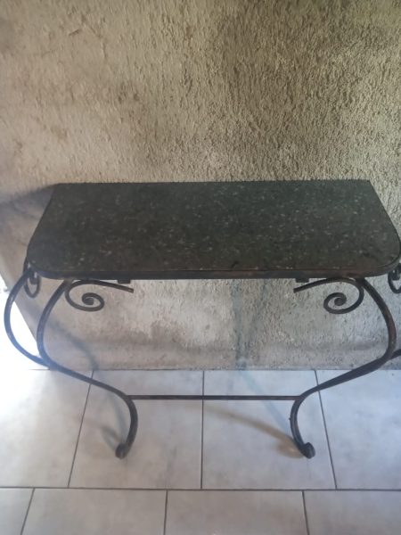 Mesita dressoire de hierro estilo colonial con marmol incluído.